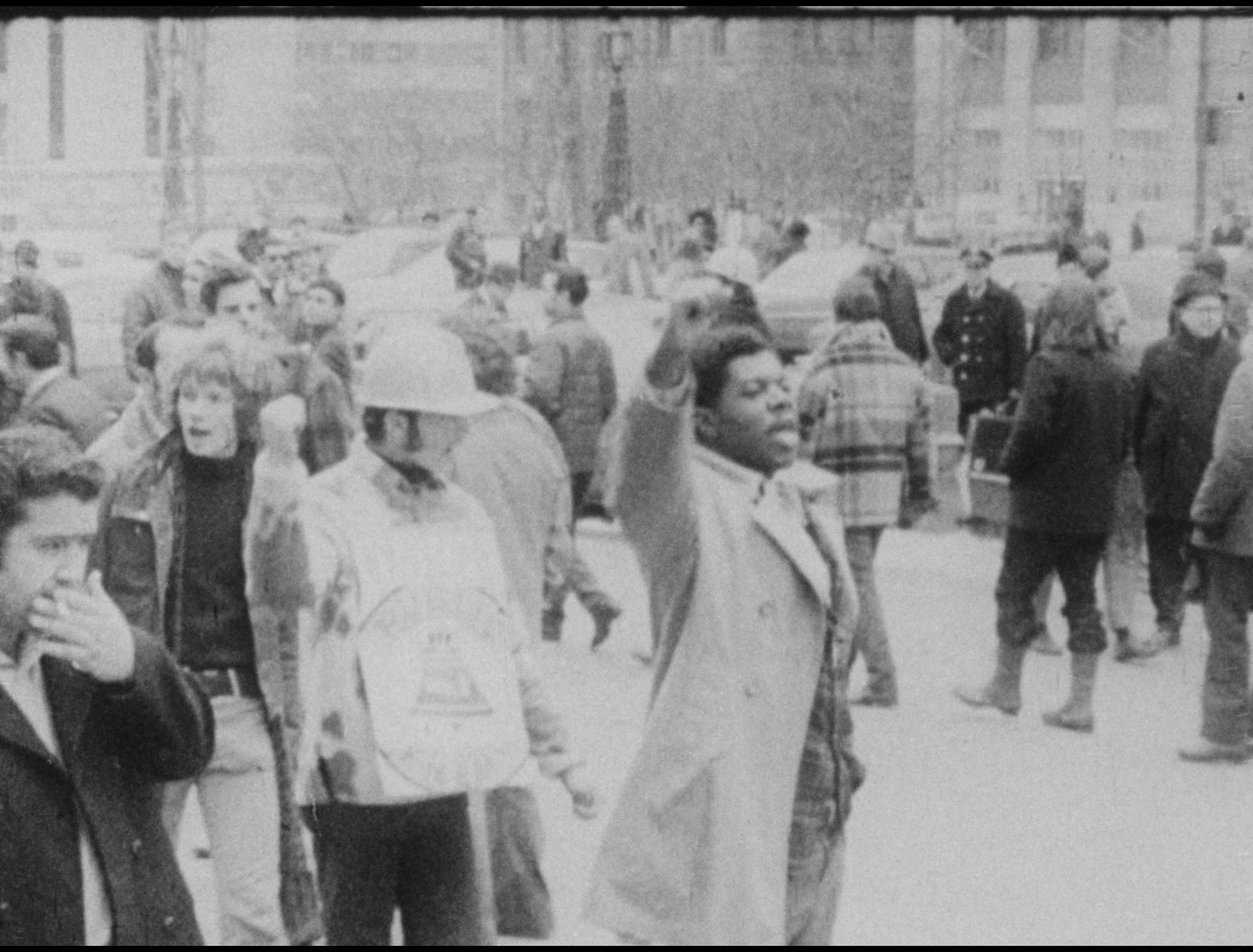 In April 1970, telecom workers from multiple unions across New York City engaged in a wildcat strike to secure better pay and improve working conditions. Newsreel’s film documents the street protests and picket lines that animated the strike, foregrounds the voices of striking workers who emphasize the racism and sexism that defined life on the job, and juxtaposes striking labor with corrupt management through montage. Short and agitational, it exemplifies how early Newsreel’s political commitments extended to the contemporary labor movement and its intersections with struggles against racism and sexism.