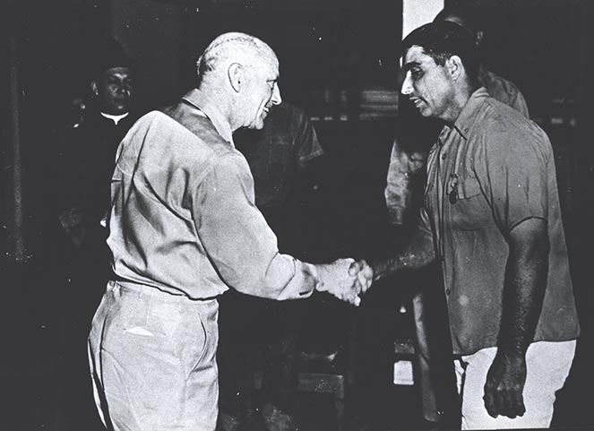 When the war began in Guam on December 7, 1941, Father Duenas was a thirty-year old Chamorro priest who immediately decided to stand up for Chamorros by openly defying the Japanese authorities attempts to change their religious beliefs, cultural traditions, and political loyalty to the United States. George Tweed was a 39-year-old American Radioman who had decided to flee into the jungle rather than be sent to a prisoner of war camp in Japan. Although unarmed and under constant surveillance for any signs of disaffection, the Chamorros decided to protect Tweed, often facing torture and death so that he could avoid capture. The stories of Chamorro families, George Tweed and Father Duenas dramatically intertwined when after nearly three years of occupation, Father Duenas, alongside two other Chamorro men, were executed for refusing to give information on the soldier’s whereabouts. Hours later, the US military rescued Tweed before beginning the takeover of Guam.